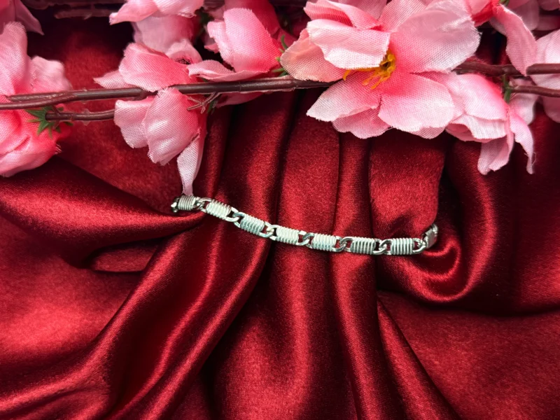 This rugged textured silver bracelet is crafted for those who want something different from standard minimal designs. Its detailed, coiled texture gives it a strong and masculine character, making it stand out effortlessly. Built with durability in mind, it offers a solid feel while still being comfortable enough for everyday wear. Perfect for men who like bold accessories that add personality without going overboard.