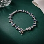 This bracelet features a fan-inspired stone arrangement that creates a striking visual appeal. Best suited for party wear and statement styling.
