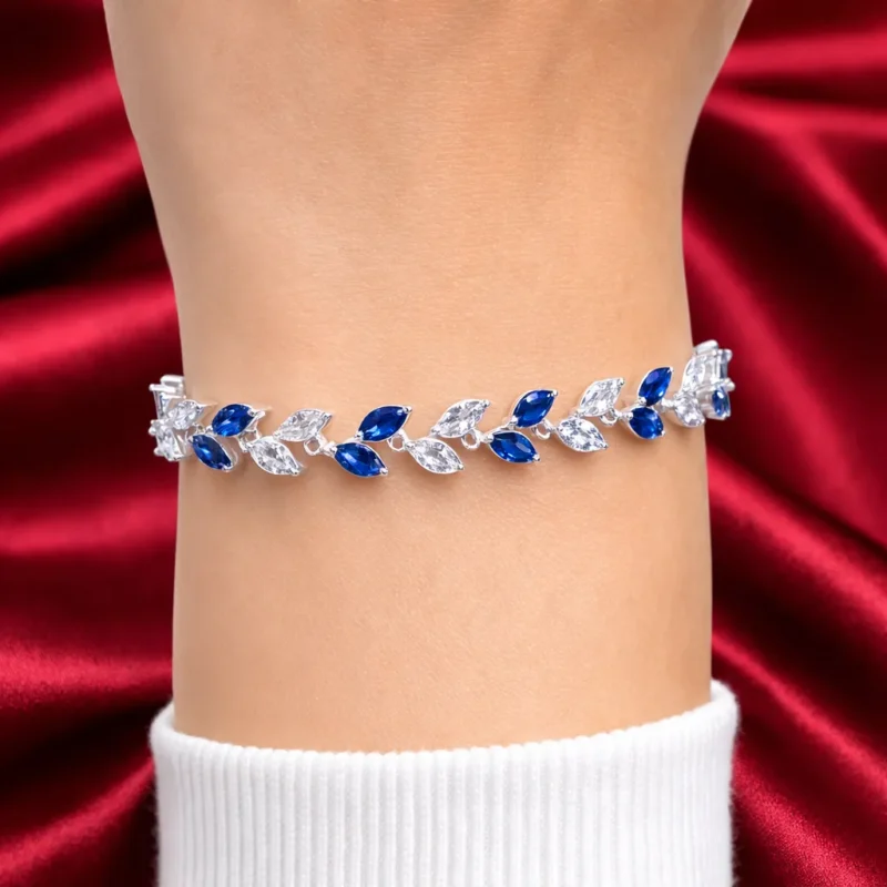 Designed for girls and women who appreciate minimal yet eye-catching jewelry, this bracelet pairs effortlessly with both traditional and modern outfits. The deep blue stones add a luxurious touch, making it a standout accessory for any special moment.