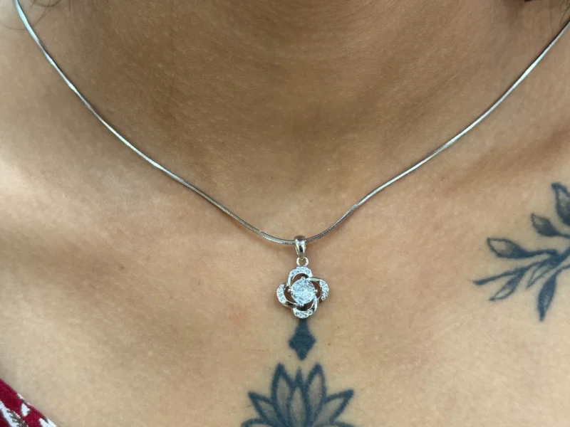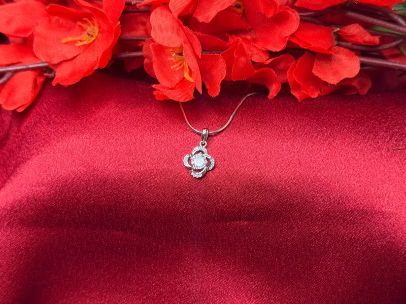 Inspired by the beauty of blooming flowers, this pendant brings a soft and graceful charm to your jewelry collection. The central stone captures light beautifully, while the surrounding petal-like design adds depth and elegance without making it look heavy. It’s the kind of piece that feels special without trying too hard—refined, feminine, and versatile. Whether you’re dressing up for an occasion or adding a touch of shine to your everyday outfit, this pendant blends seamlessly with your style. It also works perfectly as a thoughtful gift, offering a mix of elegance and emotional value without being overly traditional.