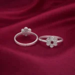 The finely crafted petals surrounding the center stone give the toe ring a traditional yet graceful look. The subtle oxidized detailing enhances the floral pattern, making the design more defined and visually appealing.