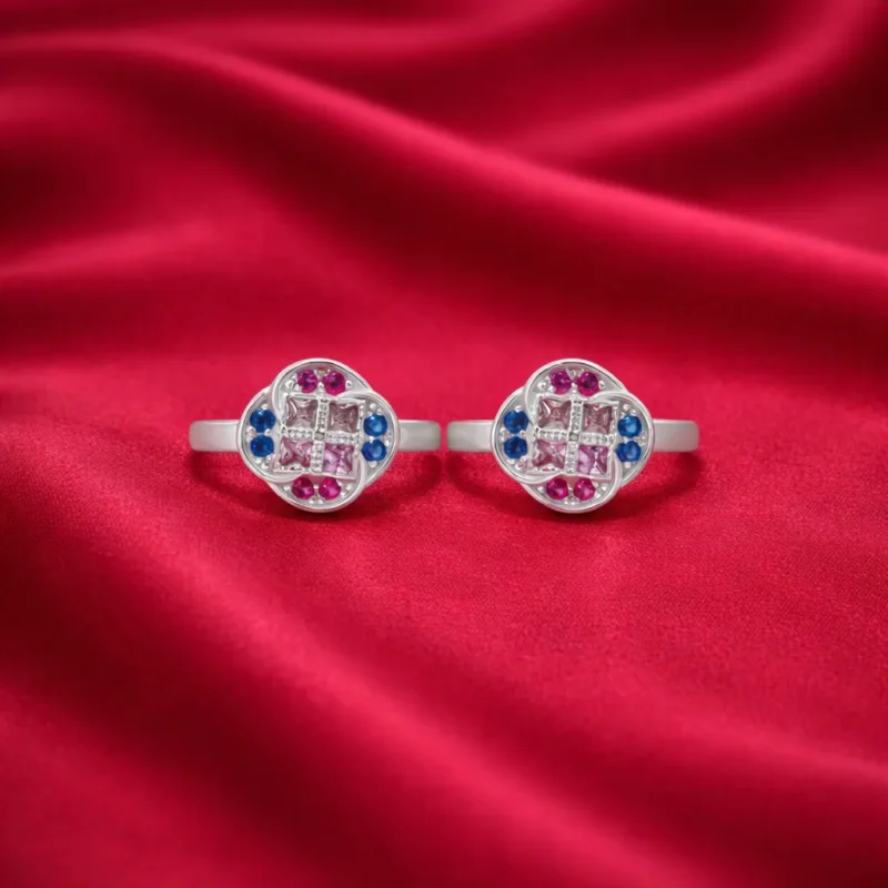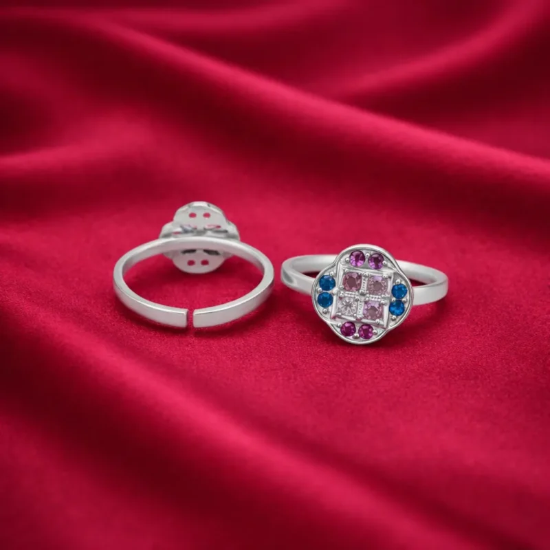 The polished silver band ensures a comfortable and lightweight fit, making the toe ring ideal for everyday wear as well as festive occasions. Its multicolor stone combination allows it to complement both traditional and modern outfits effortlessly.