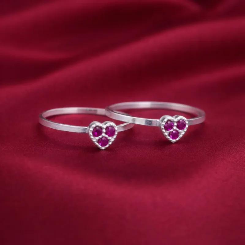 The minimalist band combined with the heart motif gives this toe ring a sweet and feminine style. The vibrant pink stones enhance the overall design, making it a perfect accessory for casual wear, festive occasions, or traditional outfits.