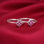 Add a touch of subtle elegance to your look with this beautifully crafted silver toe ring. Made from high-quality 925 sterling silver, this design features a delicate diamond-shaped cluster setting adorned with sparkling pink stones that catch the light beautifully.