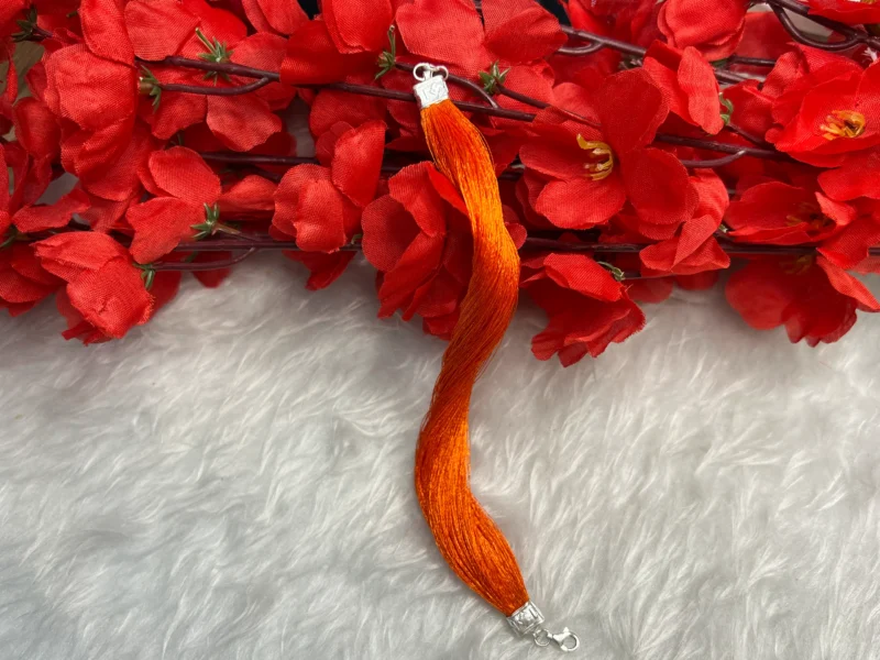 Embrace spirituality and style with this beautifully crafted raksha thread bracelet featuring a vibrant bhagwa tassel and elegant silver-toned detailing. Designed to represent protection, faith, and inner strength, this bracelet carries deep cultural significance while maintaining a modern aesthetic. Lightweight and comfortable, it is perfect for daily wear or special occasions. Whether worn for personal belief or gifted to a loved one, this bracelet serves as a meaningful symbol of positivity and divine connection.