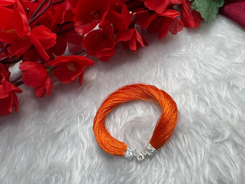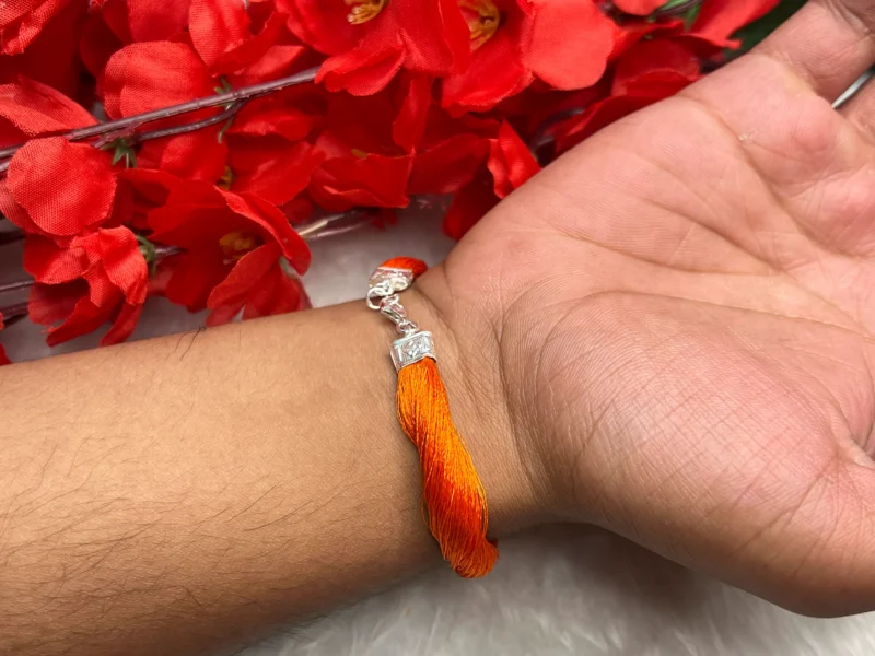 Silver Raksha Thread Bracelet with Bhagwa Tassel (Spiritual Kada)