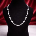 This unique silver chain is detailed with square bead elements that add structure and visual interest. The symmetrical design gives it a refined yet fashionable look, making it suitable for both everyday wear and special occasions. A perfect choice for customers looking for something different from traditional chains.