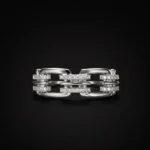•Gemstone Accents: The leading edge of the chevron is pavé-set with shimmering crystals for a refined glow.