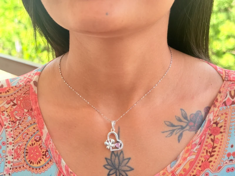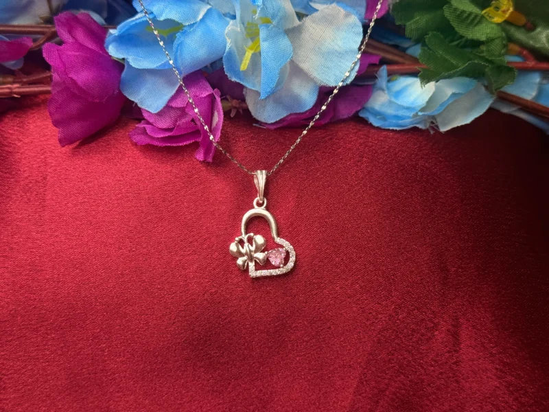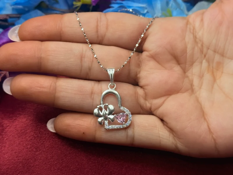 The Sweetheart Bow Silver Pendant Necklace is designed to capture the essence of love and elegance through its heart-shaped form, delicate bow detail, and soft pink stone accent. This charming piece adds a romantic and graceful touch to any outfit, making it ideal for everyday wear or as a thoughtful gift for someone special.