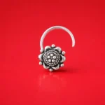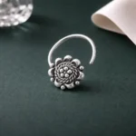 Enhance your traditional look with this beautiful oxidized floral nose pin. Crafted with a detailed flower-inspired design and intricate spiral bead pattern at the center, this piece reflects classic Indian jewelry craftsmanship.