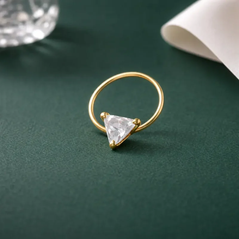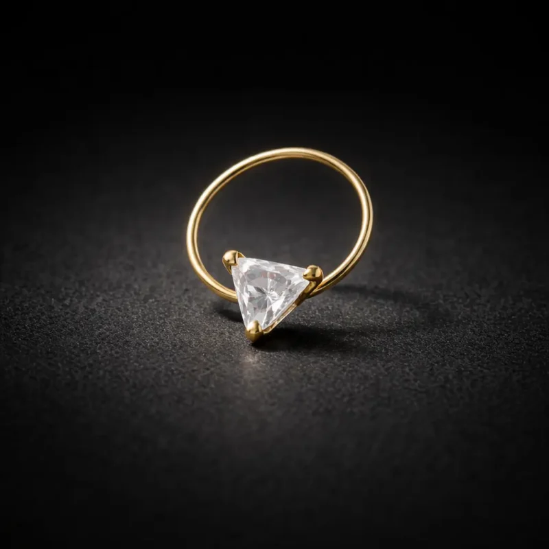 Elegant gold-finish nose pin featuring a sparkling triangle-cut crystal. Minimal, stylish, and perfect for everyday wear.