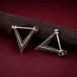 Crafted with a polished silver finish, these earrings balance minimal structure with artistic texture. The layered triangular design gives depth and dimension, making them visually eye-catching without being overly heavy.
