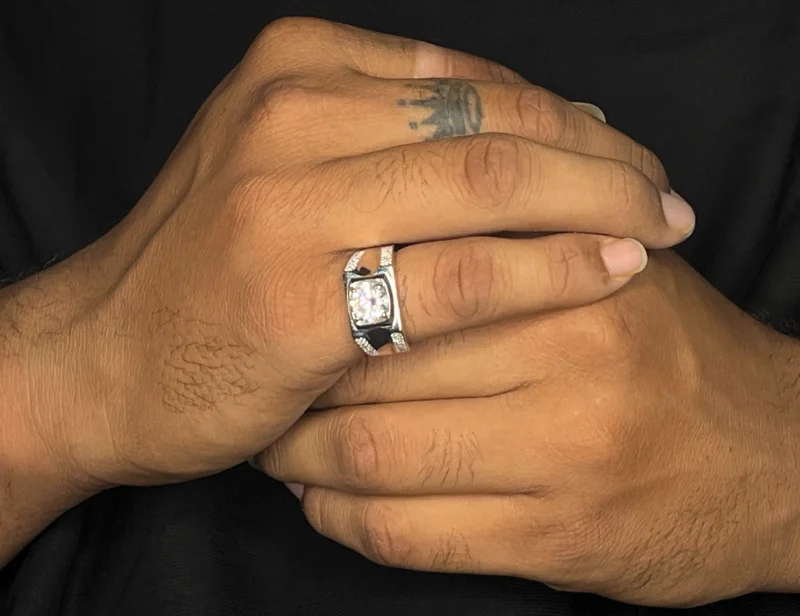 The Twin Spark Silver Ring is crafted for men who want a bold yet refined style. Featuring a raised center crystal complemented by dual side stone detailing, this ring delivers balanced shine and structure. Its polished finish and sturdy build give it a premium feel, making it perfect for both special occasions and confident everyday wear.