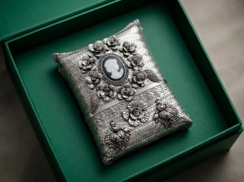 The Vintage Silver Floral Cameo Purse is a statement accessory designed for those who appreciate timeless elegance and artistic craftsmanship. Inspired by classic Victorian aesthetics, this purse combines intricate detailing with a sophisticated silver finish, making it a standout piece for special occasions.