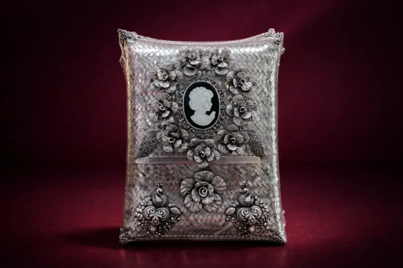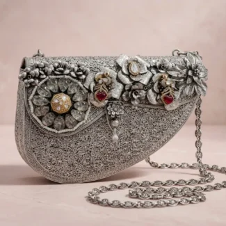 Tags: bridal purse, cameo clutch, designer ethnic bag, festive handbag, floral silver clutch, handcrafted clutch, metallic pouch, ornamental purse, party clutch, silver pouch, statement purse, unique clutch, Victorian style clutch, vintage style bag, wedding accessory