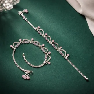 •Design Motif: Features a structured curb-link drop, with the primary link fully pavé-set with brilliant white crystals.