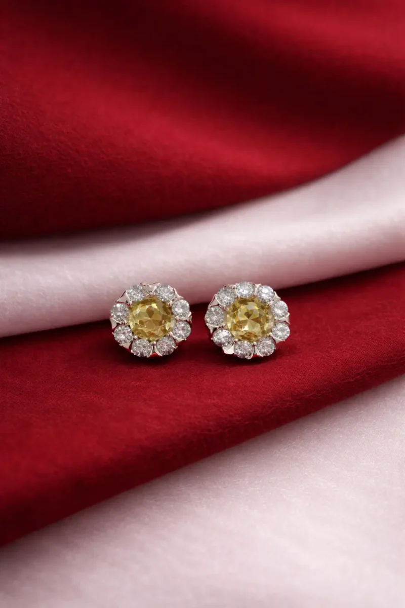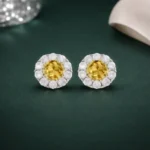 Yellow center floral halo studs