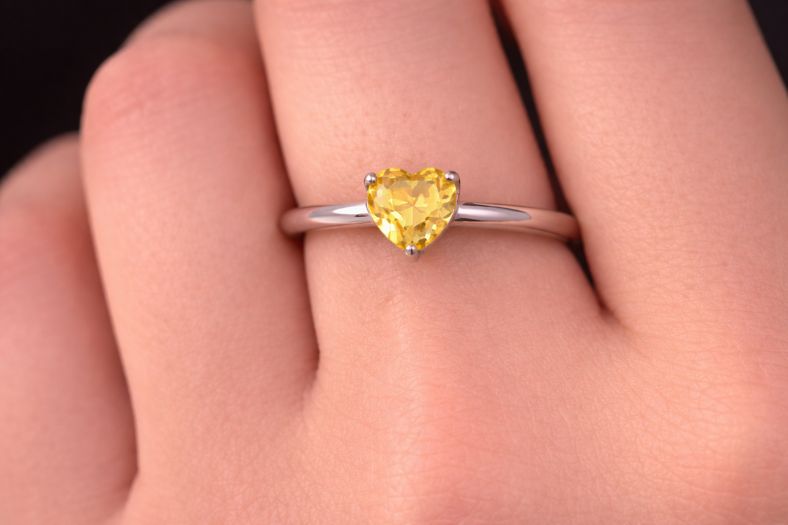 Yellow heart-shaped solitaire ring in silver.