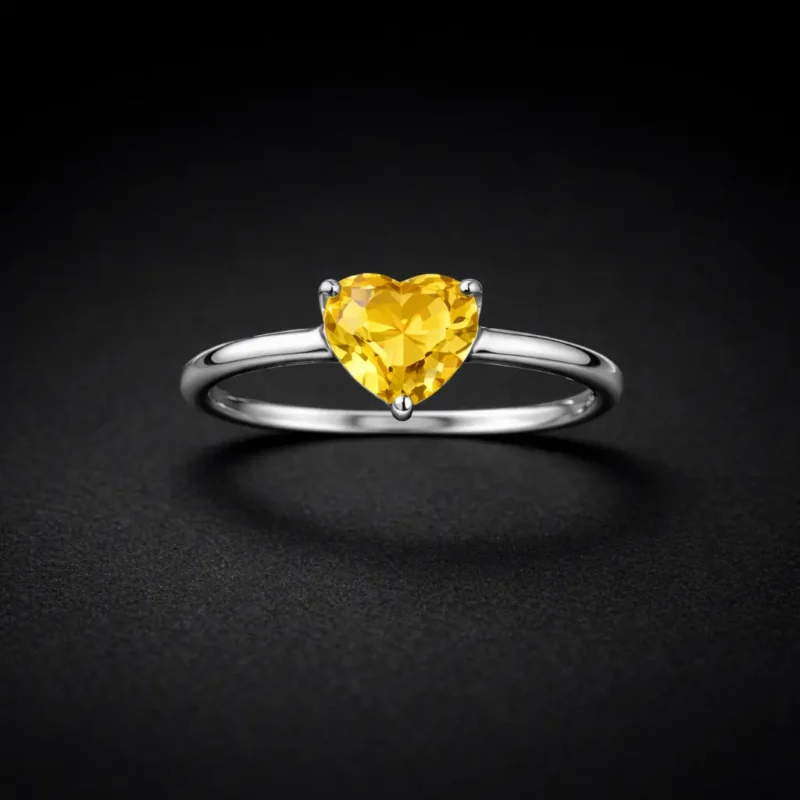 This solitaire ring showcases a yellow heart-shaped stone set on a polished silver band. Crafted in 925 sterling silver, it offers a youthful and cheerful appearance. Ideal for casual wear and gifting.