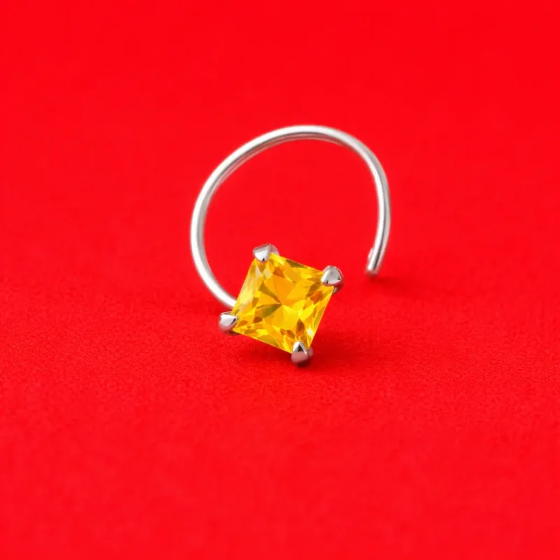Yellow Square Crystal Nose Pin – marvelsilver.com