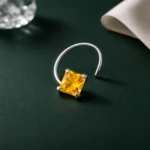 Bright square yellow crystal nose pin with a sleek silver finish. Minimal, lightweight, and perfect for everyday wear.