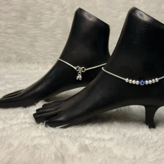 Classic Evil Eye Silver Anklet with Dual Charms